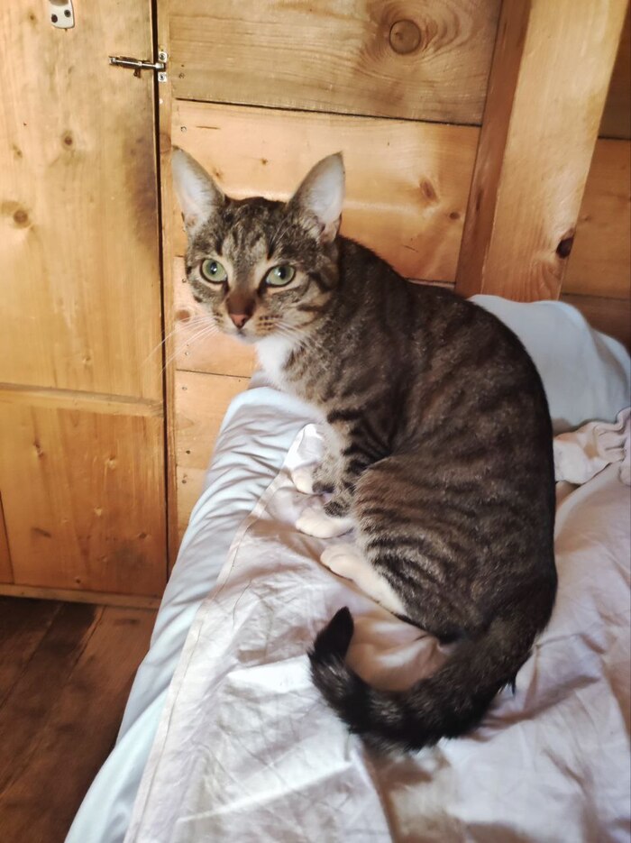 Наступил день отъезда. Рюкзаки и сумки собраны, переноска стоит. Яшки нет нигде! На завтрак приходил, а потом свалил. Мы с мужем его искали, даже на озеро через лес пошли:"Яша, Кот, кис-кис-кис". Не отзывается. Все возможные места вокруг дома проверили- нет нигде! Пропал Яшка! Нельзя ему в деревне- до осени сцапают, да и муж к нему очень привязался. У них с первого дня особая связь. Муж тем временем нашёл большой ствол крушины, гордо донёс до трактора: "Яшке дома когтеточку сделаю. Лесная! С родных мест!". Яшки нет! Уже обед - не идёт! Собака тоже распереживалась- ему Яшка очень приглянулся и они уже подружились.Сижу на ступеньках летней кухни и плачу:"Найдись! Куда ж ты свалил, гад! Яшка-Яшка, нельзя тебе тут оставаться". И тут выруливает! С очередной мышью в зубах и по-королевски бросает её мне под ноги.