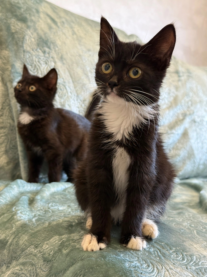 Что можно о них сказать? Всё только хорошее! Малышки они невероятно красивые! Бэтти - девочка интересного маркизного окраса: в чёрном костюмчике, с белыми перчатками, белыми гольфиками и просто роскошными усиками. Лилу - чёрная, грациозная пантерка с белой манишкой и очень красивыми, выразительными глазками. Обе малышки - очень смышлёные, добрые, контактные, игривые девчонки. Ласковые, нежные и трогательные создания.