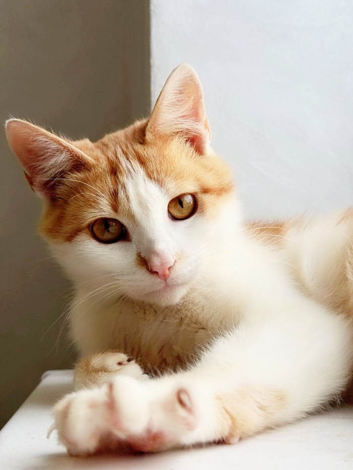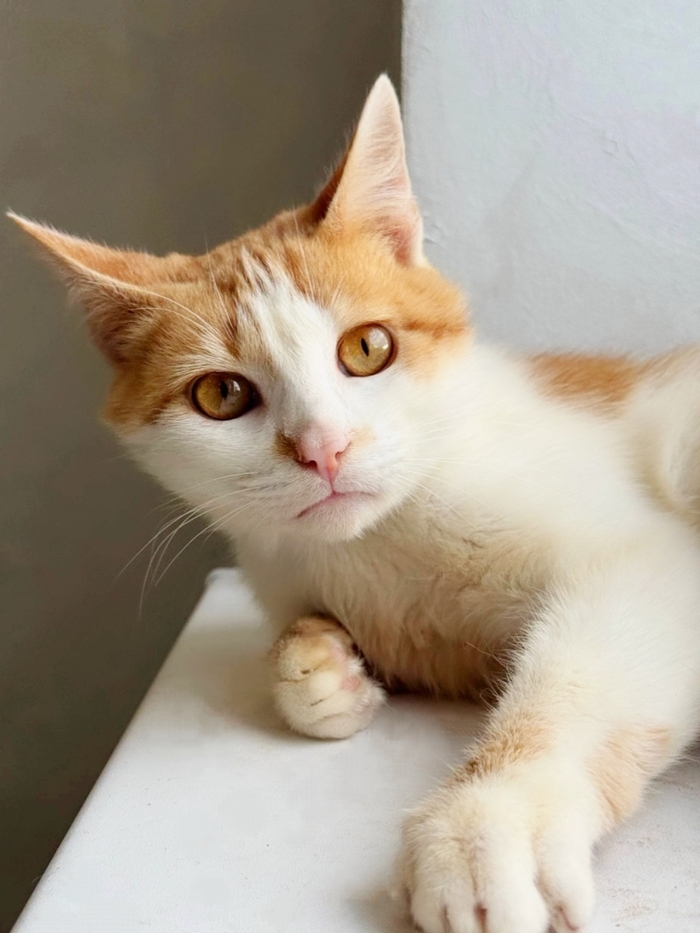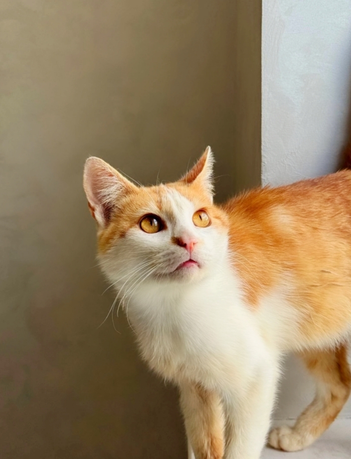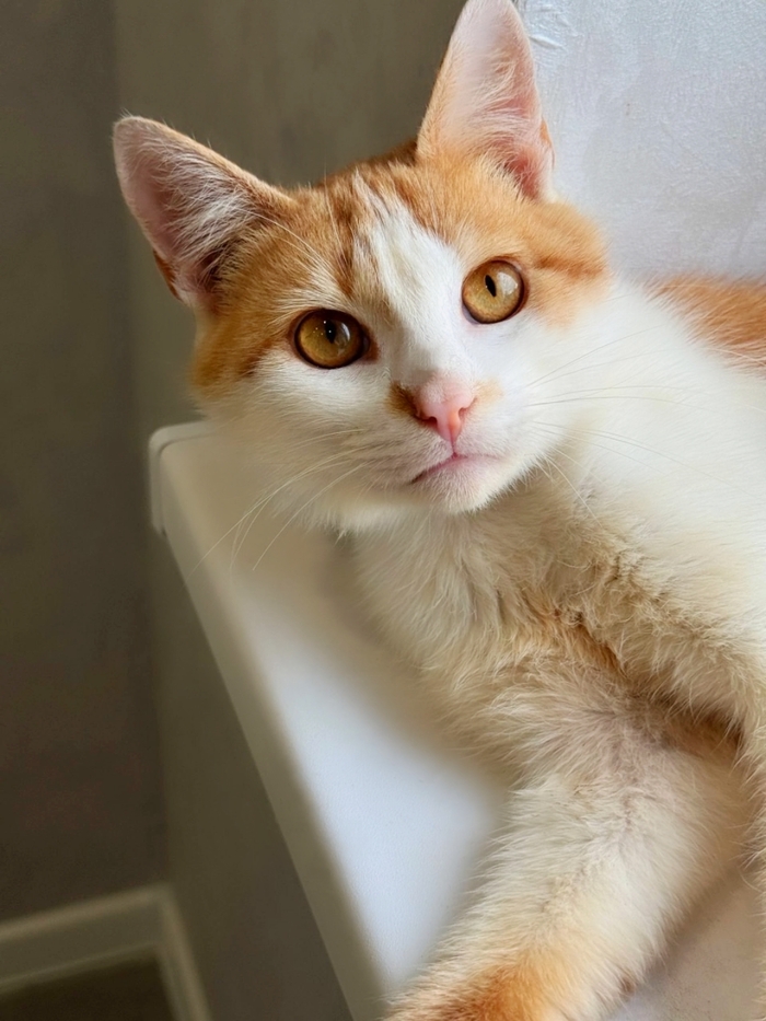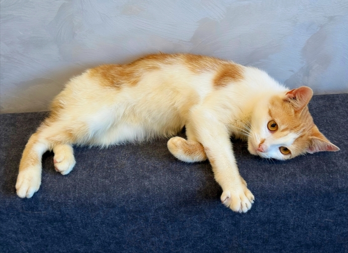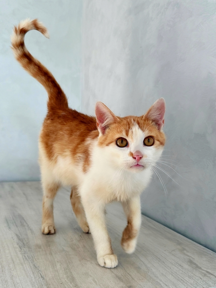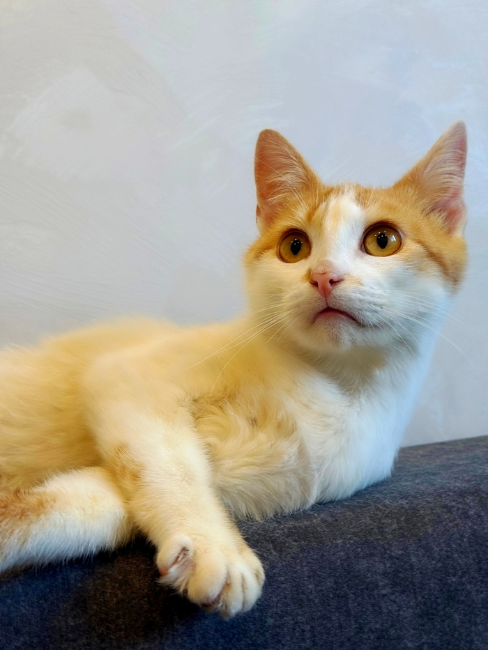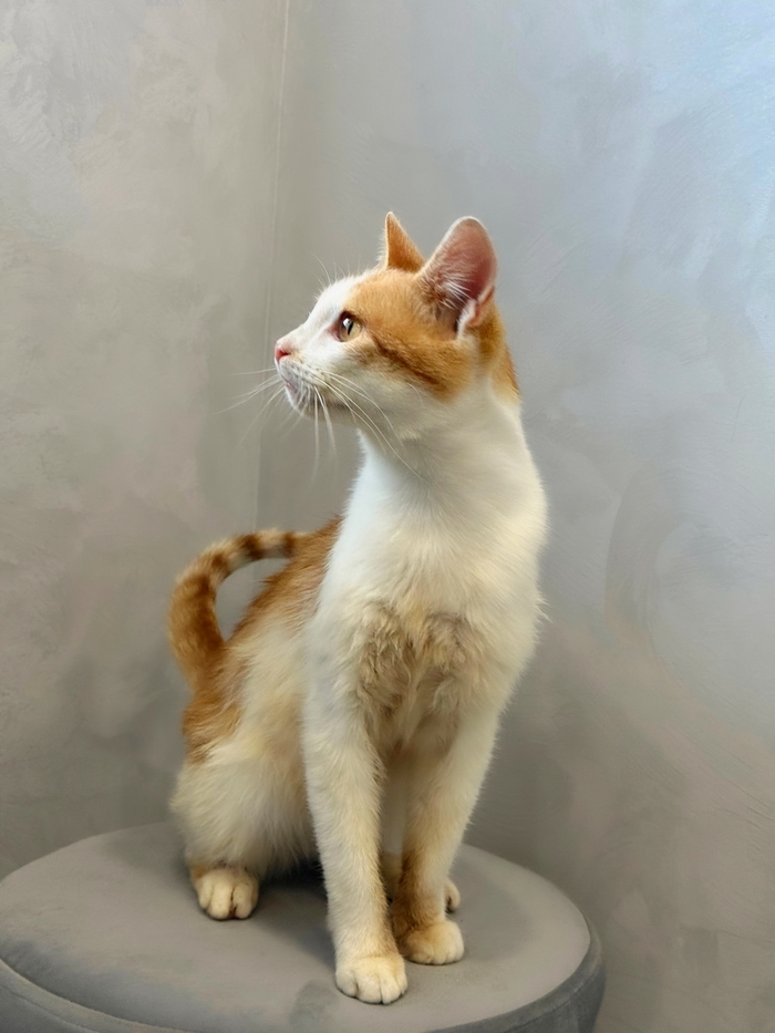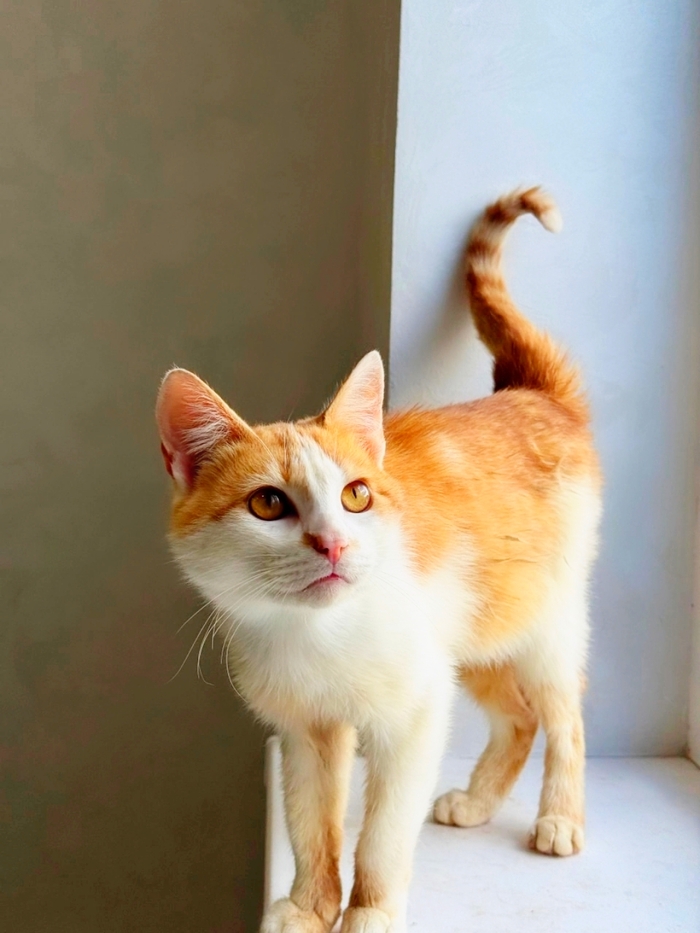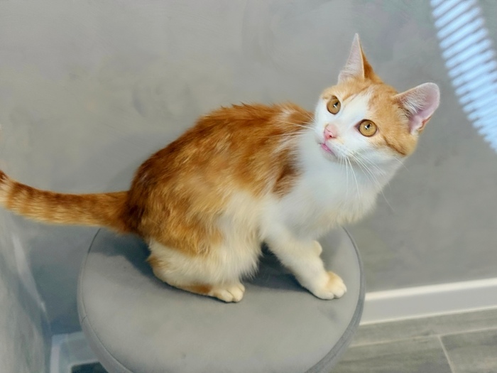 Ненужный никому, тощий, чумазый, уличный котёнок, отмытый до рыже-бела, оказался настоящим золотцем - и внешне, и по характеру. В меру активный, игривый, умненький и любознательный мальчишка, совсем ручной, добрый и очень ласковый.