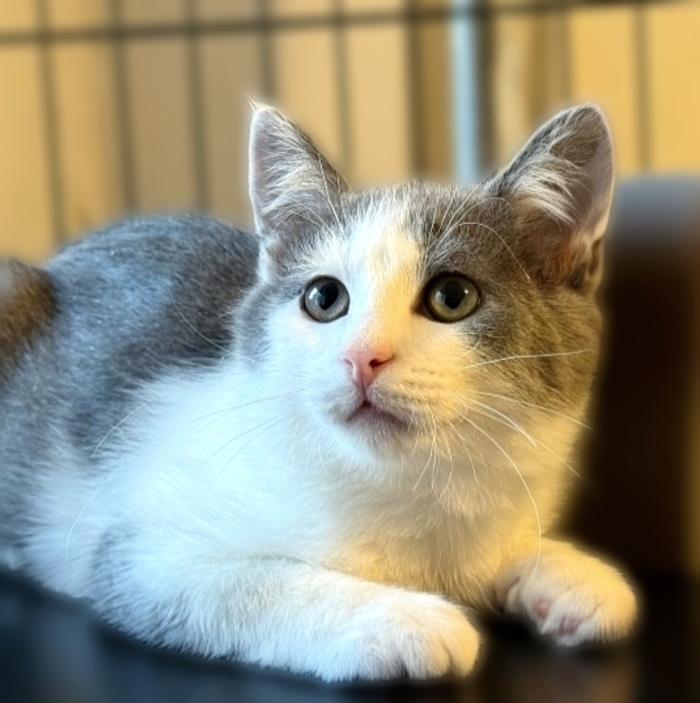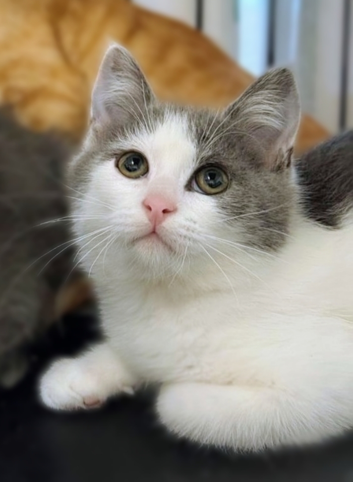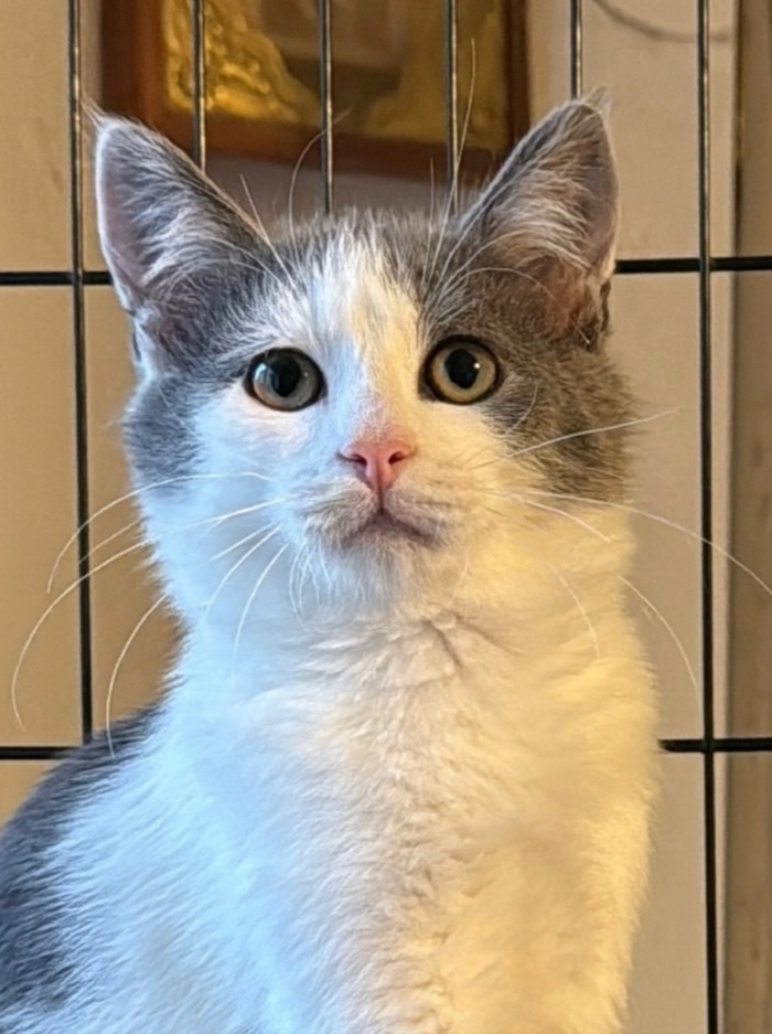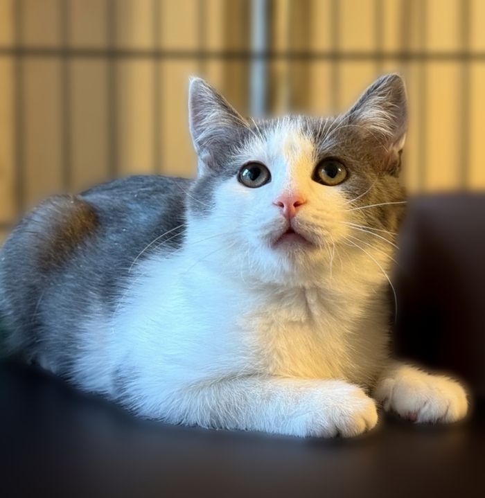 🐾🐾🐾Чудесный котёнок-подросток Чиж серо-белого окраса с красивыми, грустными глазками ищет дом и любящих родителей. Славный мальчишка, умный, добрый и ласковый. Возраст - около 4 месяцев. Здоров, от паразитов обработан, с лоточком дружит.
