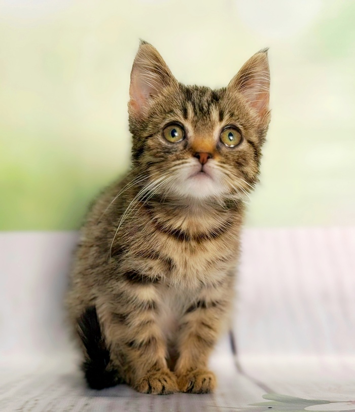 🐾🐾🐾Замечательный маленький котёнок Кнопа тигрового табби окраса ищет дом и любящих родителей. Вы только посмотрите на это чудо! Красивые грустные глазки, милая мордашка, полосатая шубка, роскошные усики и кисточки на ушках - ну просто очаровашка, мимимишный тигрёнок в миниатюре.