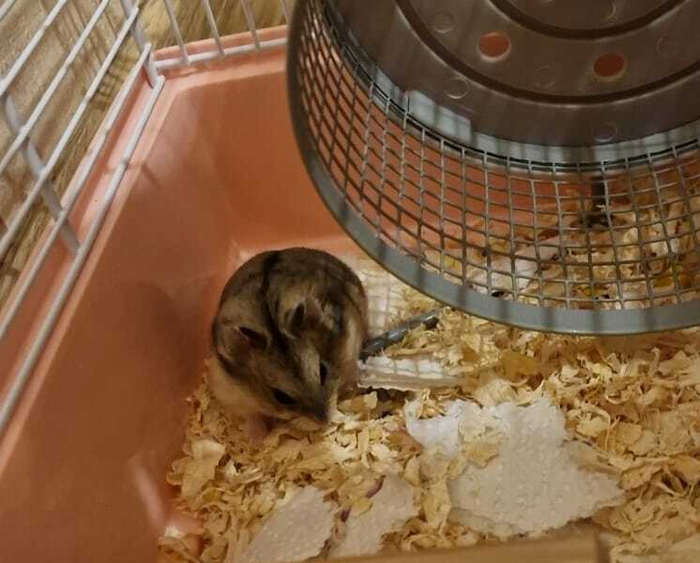 Больной хомячок,(Проблема с глазами, много пил и писал. Возможно что-то с почками или сахарный диабет) которого мы взяли из жалости в зоомагазине к сожалению прожил полтора года и тихо умер у себя в деревянном домике. Взяли новую, молоденькую хомячиху. Грубо говоря какая была. На вид здоровая и активная.