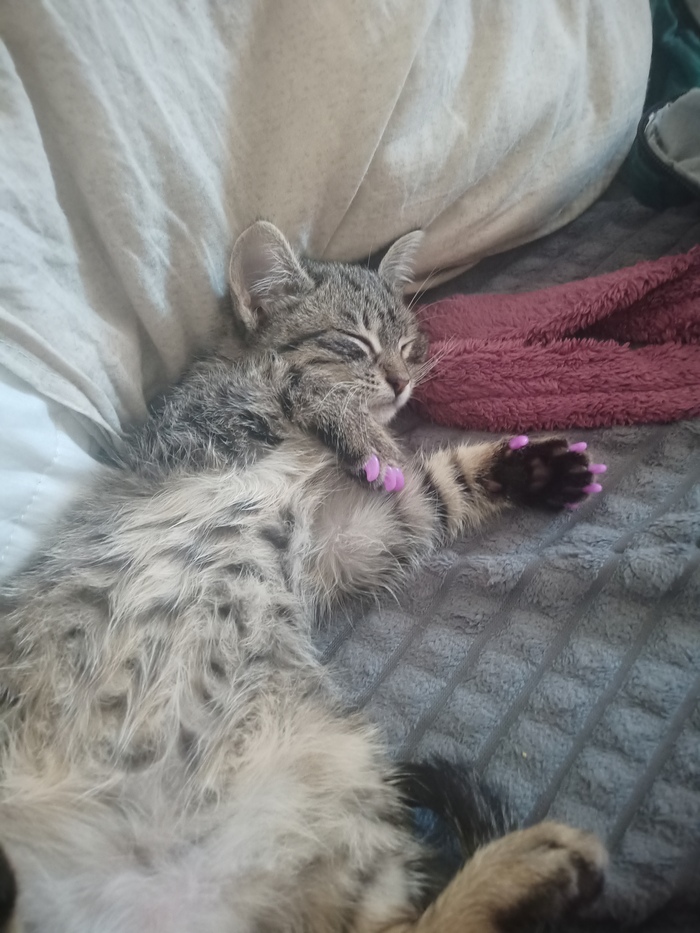 Дома, нашего нового пушистого друга искупали, обработали от паразитов и познакомили со старшим котом.