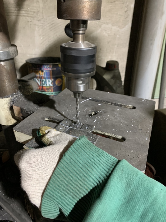 На профиле отмечаем центр и сверлим. Сверлом поменьше намечаем место, чтобы все не поехало под углом, сверлом побольше рассверливаем до нужного размера. С двух сторон – для точности, не насквозь.