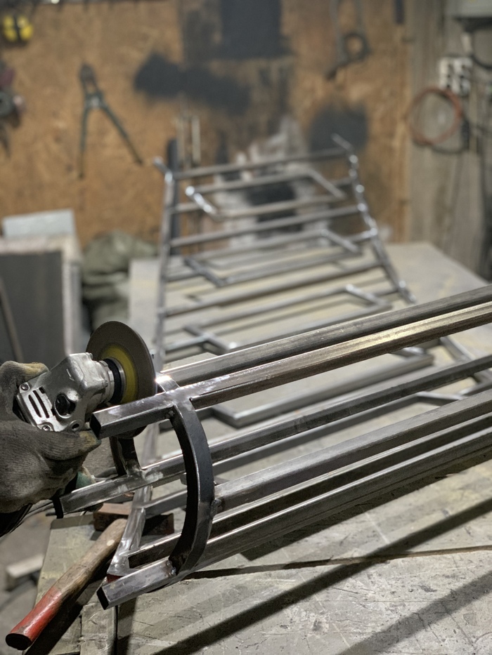 Дальше собираем на болты, подтягиваем, обрезаем лишнее, завариваем гайки, зачищаем и подкрашиваем.