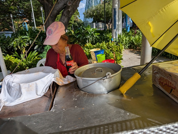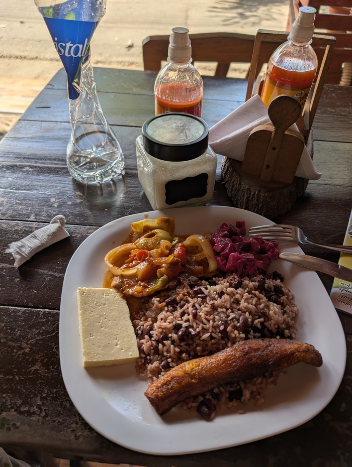 После сон часа пошел в портовую забегаловку. Заказал себе супа и рыбу с рисом, но повар настойчиво предложил выбрать что-то одно. Два блюда - слишком много, и со смехом указал на свой живот. Поел вкусного супа из бычьего хвоста, а после подали кофе. Кофе никогда не пью, но тут отказываться было неловко. И суп, и кофе были наваристый, аж ложка стоит. Повар не обманул: объелся, хоть опять на сиесту уходи.
