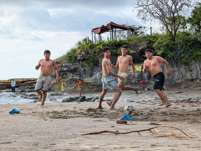 Как оно водится в Латиноамериканских странах, к океану особо не подобраться. Везде ворота и заборы с надписью "Частная Собственность". Ещё на заборах полно политических баннеров, вроде "Голосуй, или проиграешь!", тоже обычная история на районе. У побережья везде стройка их мрамора с позолотой. Люксовый поселок "Боливар", успейте купить, пока не разобрали!
