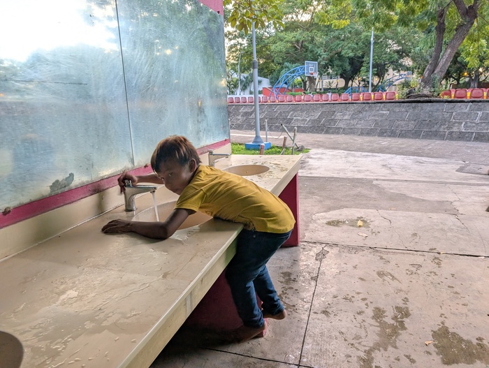 Зато местные живут очень скромно. ОЧЕНЬ скромно. Когда круглый год +35, кирпичные стены со стеклопакетами совсем не обязательны. Но крыша над головой без дырок многим местным пришлась бы кстати. Особенно детворе. Малыши вовсю помогают родителям: машут лопатами, таскают хворост и грязные тарелки в предорожных забегаловках.