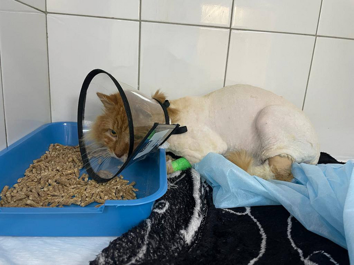 На данный момент у Лайма пролечен острый панкреатит, который давал сильные гематомы по всему телу. Пролечены респираторные инфекции. Он кастрирован, для того чтобы не наркозить его несколько раз, в силу того что он уже очень возрастной котик, второй наркоз может сказаться на его состоянии. Первая седация была необходима для его полноценного осмотра, так как он не давал себя посмотреть/осмотреть, а так же его постригли, потому что у него были колтуны буквально по каждому миллиметру и тянули его кожу, создавая дополнительную боль. У него так же было проведено удаление фаланги застаревшей травмы, которая была очень болезненная для него. Ещё имеется застаревший вывих челюсти, в связи с чем кажется что с ней что-то не так. Были обнаружены проблемы с печенью и были критичные показатели билирубина (это больше 100), корректной терапией удалось понизить до полной нормы. Можно считать, что мы прошли самый тяжелый момент и он практически готов к выписке.
