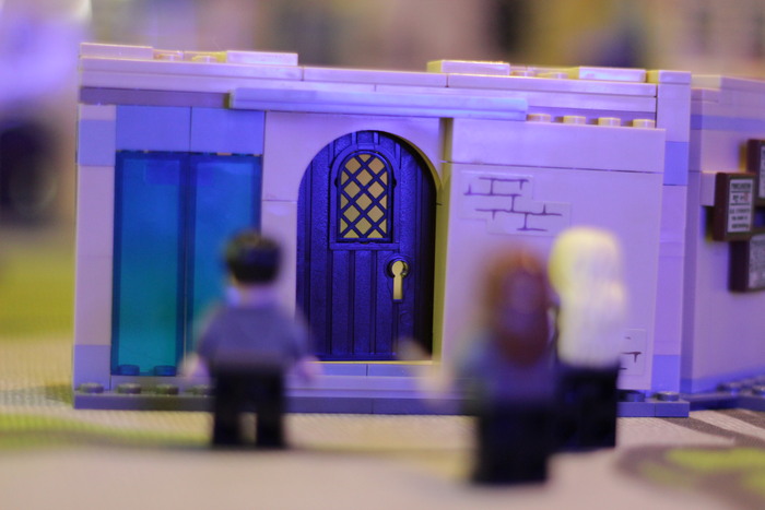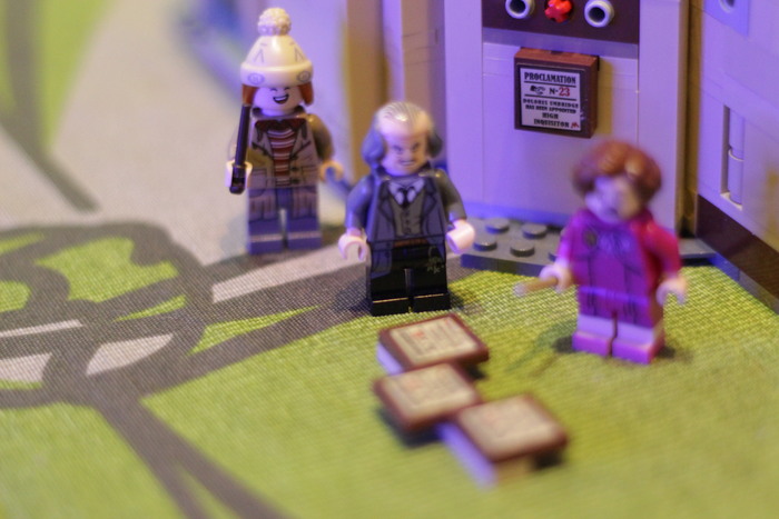 Я переставила сюда часть декораций из набора 2021 года "Тайная комната": трибуну-сову, угощения на столах.