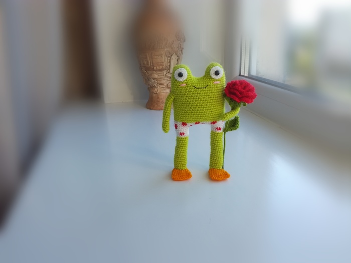 1831 Sova.ami Рукодельники Серия Любовь Влюбленный лягушонок в трусах в горошек 7 лет назад Совершенно внезапно связалась у меня такая вот странная животинушка.Шорты снимаются, а под ними труселя :) Вязала без схемы, вдохновившись чужой работой. Показать полностью 3 [моё] Вязание Рукоделие Рукоделие без процесса Амигуруми Лягушки Вязаные игрушки Длиннопост