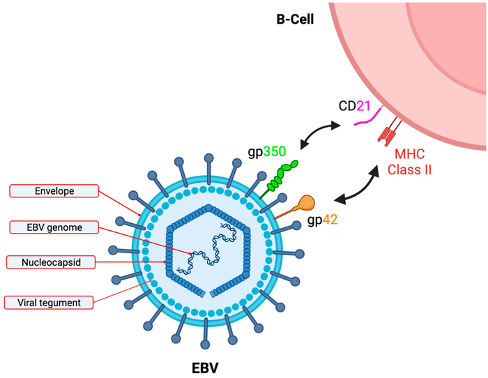 В клетке время от времени пробуждается вирус Эпштейна-Барр и начинает производить вирусный белок EBNA2. Этот белок активирует ряд ранее «молчавших» генов в B-клетке, которые начинают производить свой набор белков. Эти белки, в свою очередь, активируют множество других провоспалительных генов.