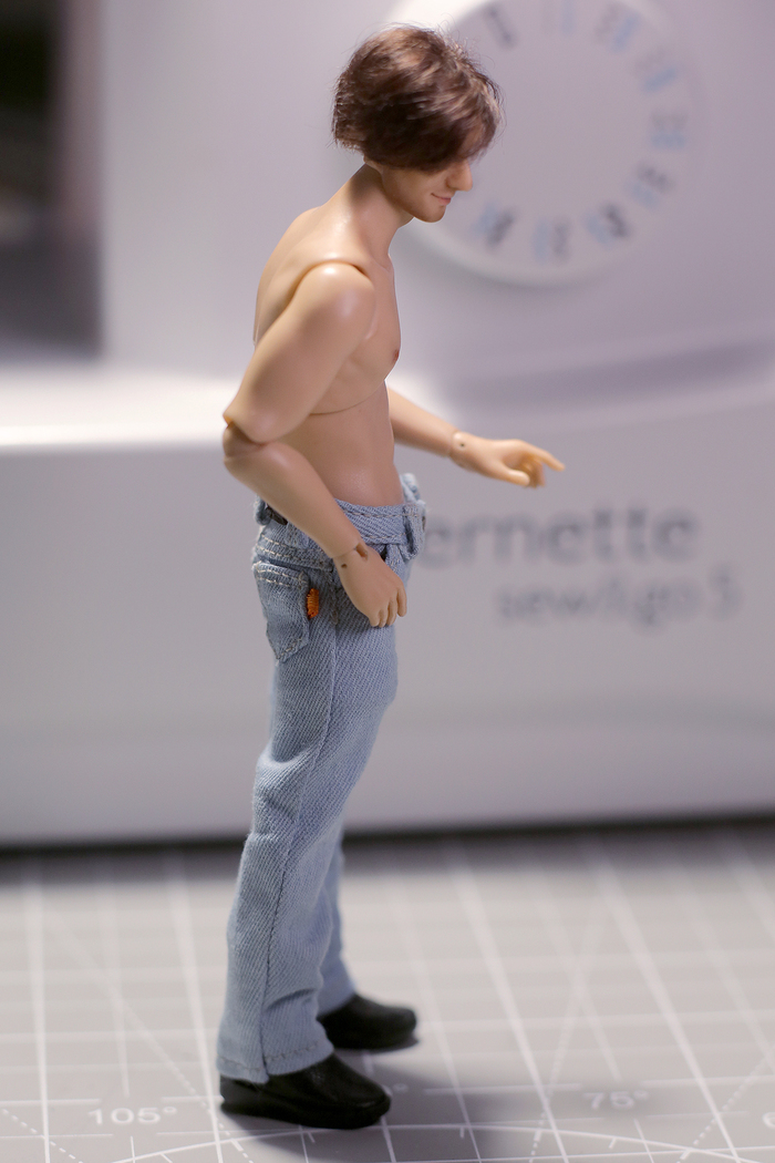 По следам предыдущих косяков сшила классические джинсы, соблюдая технологию от и до. И Чарли Бесштанный, наконец, получил свои штаны.