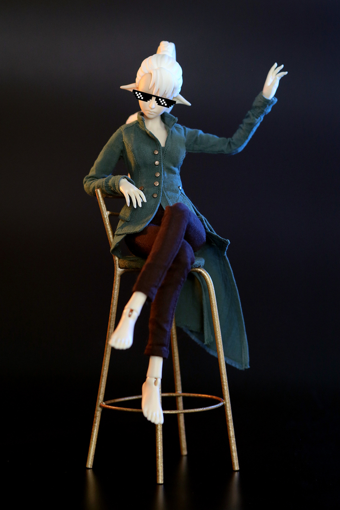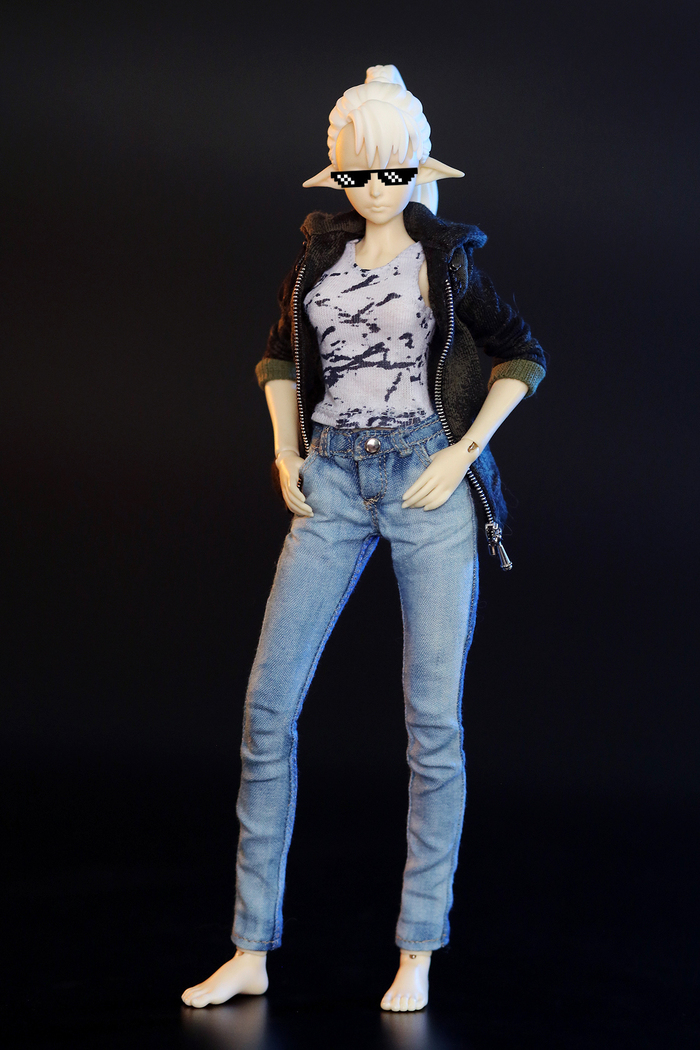 Но на этом страдания швейной машинки не закончились. Мы с владелицей эльфы подумали и решили, что нужен ещё приличный городской комплект. Штош, это мы умеем, это мы могём... Так у эльфийки появился топ, джинсы и кофта с капюшоном.