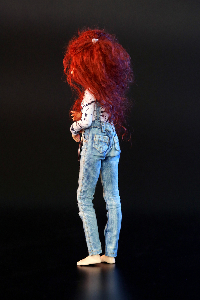Далее я заменила джинсы на более детализированные и добавила ещё пару слоёв на верх. Жилет изобретался буквально на коленке - мне хотелось и сюда впихнуть защипы. Сломала иглу, но впихнула. И всё равно не совсем довольна, потом когда-нибудь переделаю.