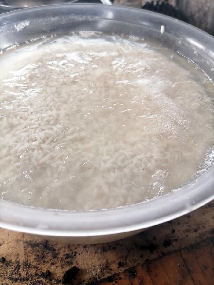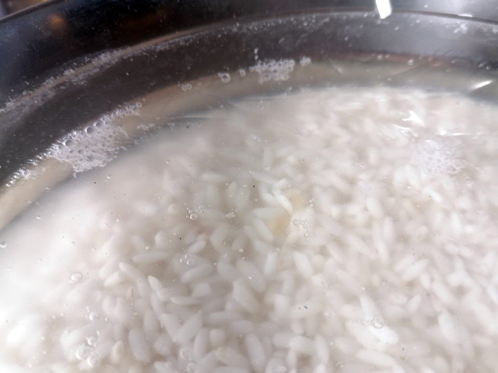 Разбиваю лёд. Сливаю воду. Еще раз чистой водой промываю рис.