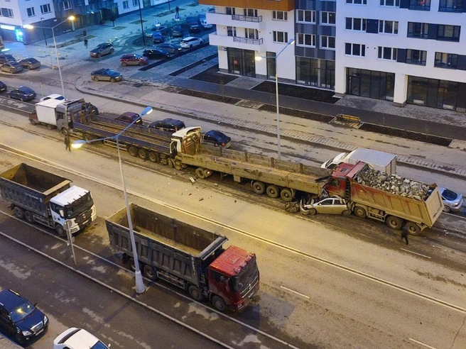 Слева - здание госуниверситета с пустой парковкой. На проспекте тоже машин немного. Слева в длинной многоэтажке магазин "Спорттовары", справа - "Центральный гастроном".