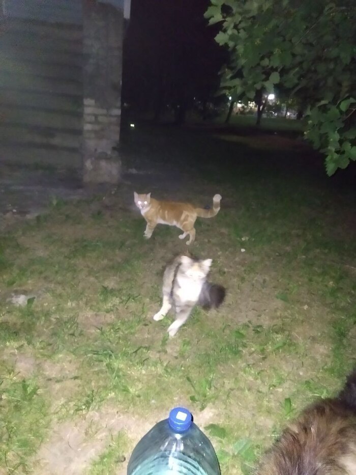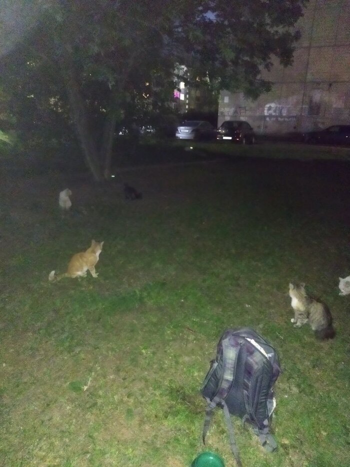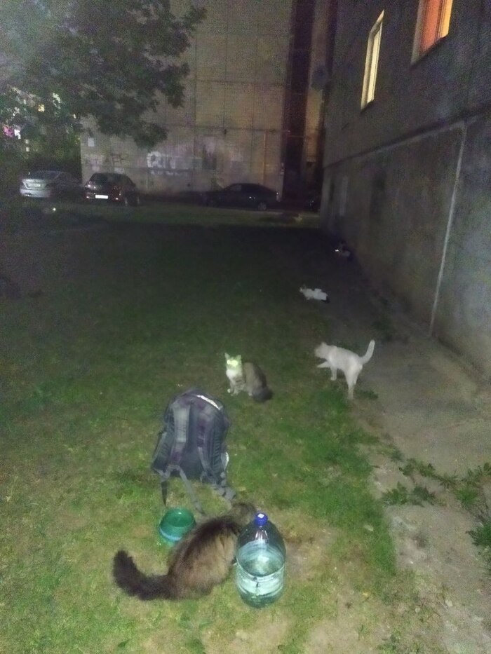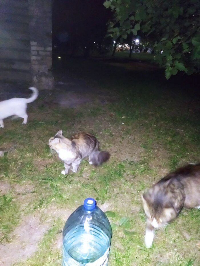 На первом фото кошки - дикие потомки выброшенных на дачах животных (в 80-х тут был лес и болото). Они уже стерилизованы мной. Прайд существовал 20 лет, пока я не занялась стерилизацией животных. Сотни животных умирали на этом месте.