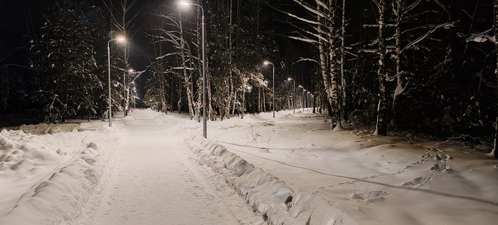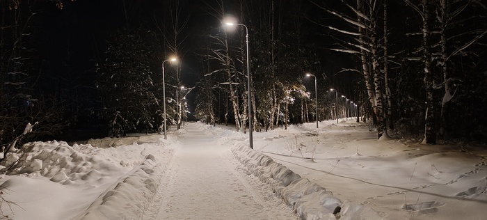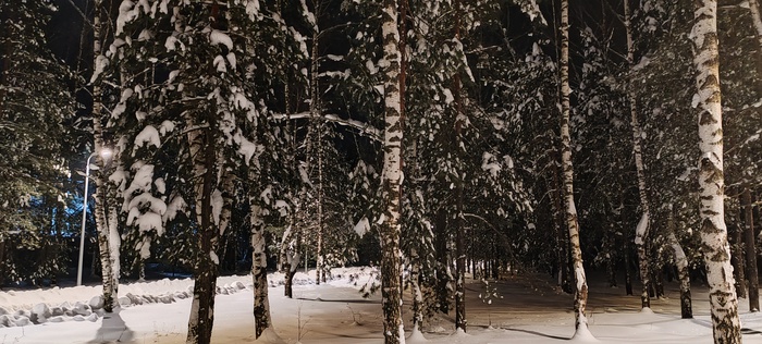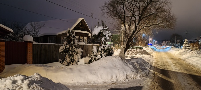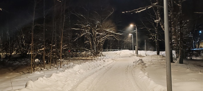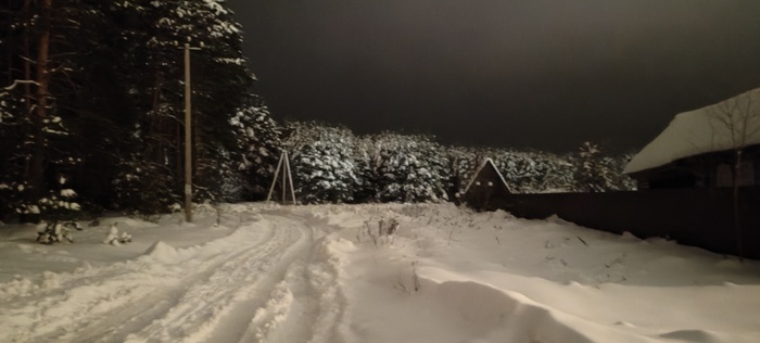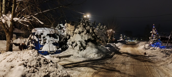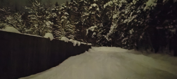 Сегодня решили пойти в соседнее село, где облагородили посадку, фонари поставили, дорожки расчистили. Я про это слышал, но не видел,  Николай (товарищ) рассказал и показал. Идём, болтаем, природа замечательная вокруг, воздух чистый, так хорошо и умиротворённо на душе, а Коля ещё вдобавок свои стихи читает, даже поначалу показалось , что это есенинские, да нет , это он посвятил свои великому русскому поэту.Снег хрустит под ногами, машины встречаются редко, зато как прекрасно слушать тишину в лесу и смотреть вверх на далёкие звезда. Знаете, когда за километр от дома захожу в наш лес с высоченными ёлками, такое ощущение, что это место ( заход)- некий портал, через который происходит связь  с вечностью, а деревья, как былинные заснеженные богатыри, сторожат «задремавшую Русь» и двух путников, пытающихся обрести покой в  этом безумном мире,  такие моменты за последние годы бывали так редко, что сейчас они для меня дороже любых диковинных, самых дорогих курортов, да и разносолов не требуется, был бы хлеб, чай и мёд на столе- прорвёмся.