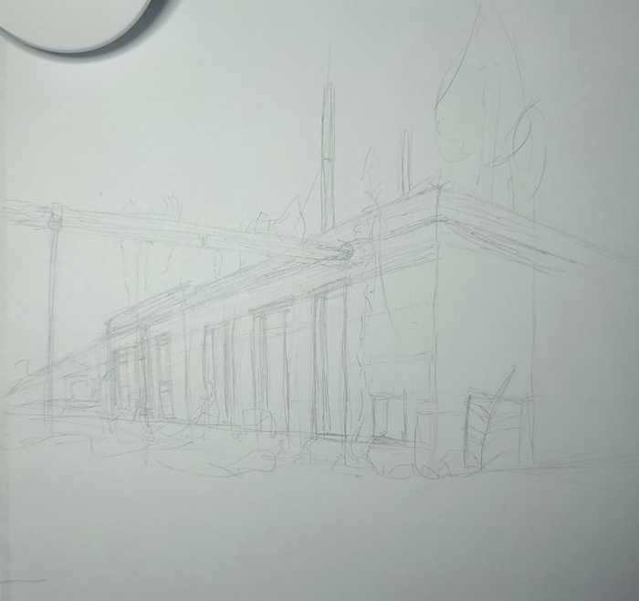 Сначала делаем примитивный набросок из базовых форм и линий.