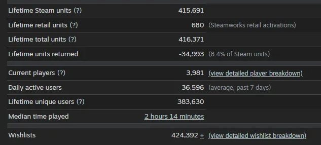 Всего за пять дней с релиза. Треть из них пришлась на первые сутки после релиза «роглайта».