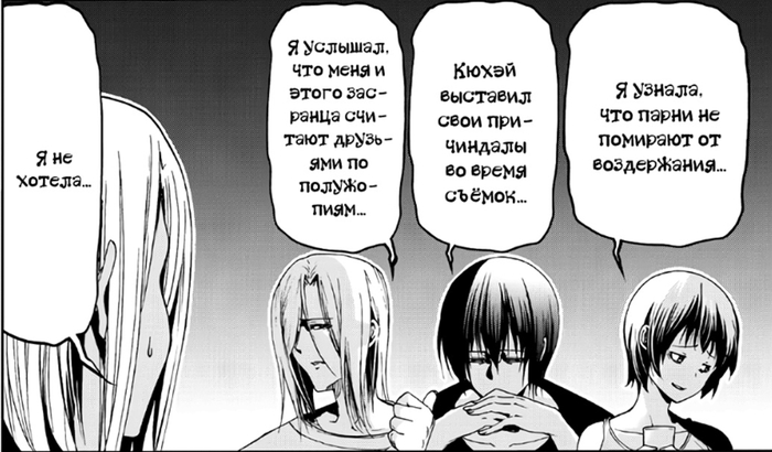 P.S. Как я и говорил, это произведение очень популярно и у нас, и на родине, и на западе, но медийно оно как будто просто не существует. Вы найдёте единицы артов (просто чтобы найти в поиске арт, а не скриншот или официальную иллюстрацию, нужно приложить немало усилий), штучные разборы, минимум обсуждений, более-менее сносное количество мемов (сносное для других аниме, но не для истории с очень сильным юмором и мемным потенциалом, как у «Необъятного океана»). Это справедливо и для русского интернета (на том же «Пикабу» 60 постов с тэгом «Grand blue» — 60! Из них 11 — мои, 5–10 — анонс второго сезона и новости по нему, 30–35 — посты времён выхода первого сезона и пару 5–10 постов, не подпадающие под эти категории, на платформах с артами — фан-артов полторы страницы, и большая часть из них повторяющаяся), и для зарубежного (Reddit имеет живой и достаточно большой сабреддит, в котором, правда, 80% контента — это публикации страниц манги, скринов серий и кусков серий, 10% — это впечатления людей, которые доходят до отдельных моментов в манге или с выходом второго сезона — впечатлений от серий, 5% — полумёртвое обсуждение, где один человек что-то вкидывает, а целых 3–5 ему отвечают, и 5% — мемы и арты, в основном опубликованные 4 года назад).