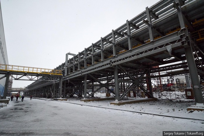 Процессы по отдельности не новы и хорошо известны в производстве, но, говорят, в такой конфигурации и в таких объемах применяются впервые в мире. А еще надо учитывать северные условия. Проектировщикам и строителям пришлось и попотеть, и померзнуть.