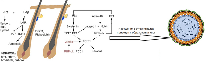 Этиопатогенез до сих пор не ясен, большинство теорий противоречивы и не объясняют сущность патологического процесса и многообразия его форм. По мнению большинства исследователей‚ заболевание вызвано задержкой созревания клеток эпидермиса на стадии базалоидных кератиноцитов.