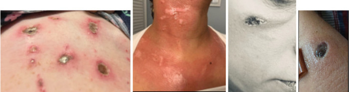 Очаги четко очерчены, могут быть единичными, но чаще множественные, обычно имеют овальную форму и располагаются по ходу линий растяжения кожи Лангера, это наиболее заметно при множественных кератомах (вид рождественской ёлки).