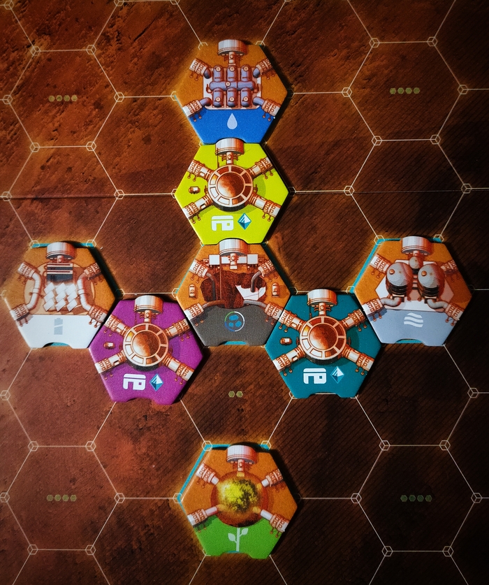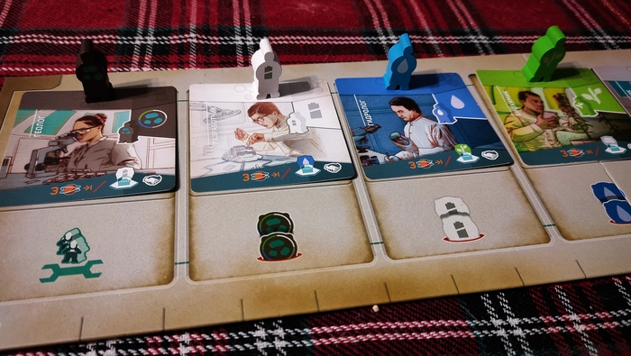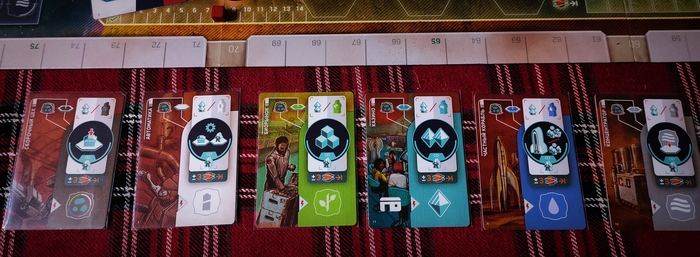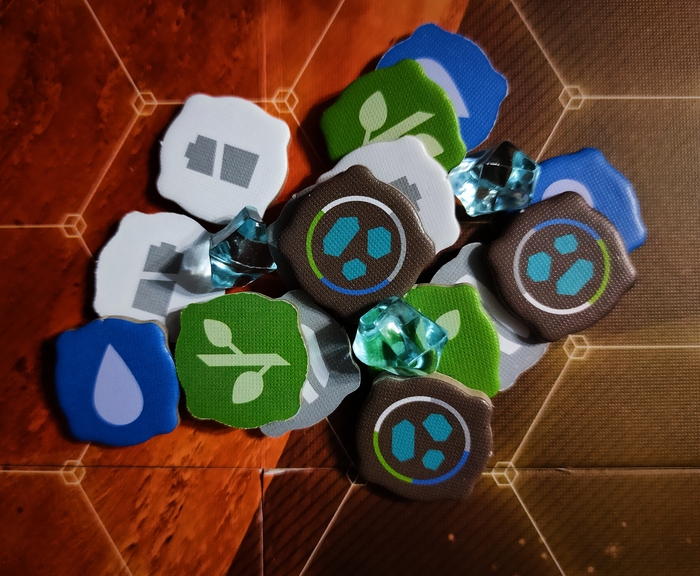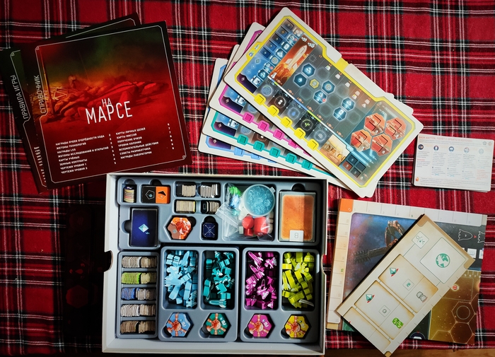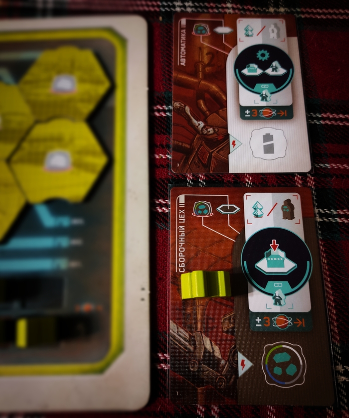 Карты в игре хоть и красивые, но очень тонкие. Настолько, что даже было страшно погнуть, когда засовывал их в протекторы. Вырубка тоже желала оставлять лучшего. Что на жетонах, что на двуслойных планшетах. Хотя я считаю это меньшим из зол.