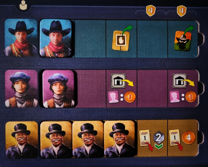 В этой фазе все неигровые персонажи и мирные животные лечатся, мы проверяем условия победы и выполнения побочных задач и прокачиваем своих персонажей. Можно получить как пассивные навыки, которые, например, усиливают персональные карты или улучшают помощников у зверя, так и одноразовые эффекты.