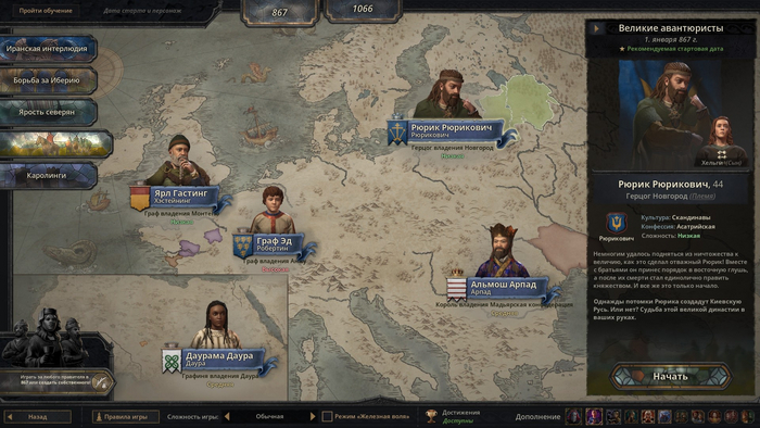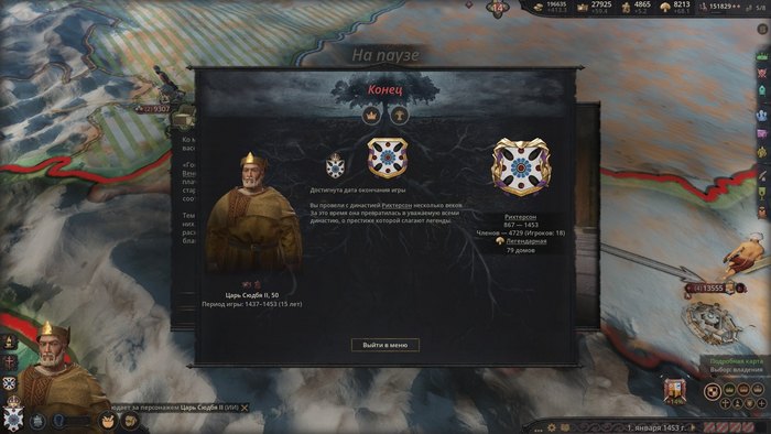 А ещё у игры очень перегруженный интерфейс - даже хуже того, что было в Hearts of Iron 4. Сверху - уведомления, слева - 9 меню по управлению государством, снизу - контроль за войной, скоростью игры и болезнями, справа - управление своей семьёй, культурой и различными персонажами. Добавьте сюда скрытое меню по событиям, необходимость держать рядом важных персонажей и личные наделы, и постоянно вылазящие уведомления на 1/4 экрана - и вот вы даже карты не можете разглядеть. Впрочем, это может раздражать, но полноценно играть не мешает никак.