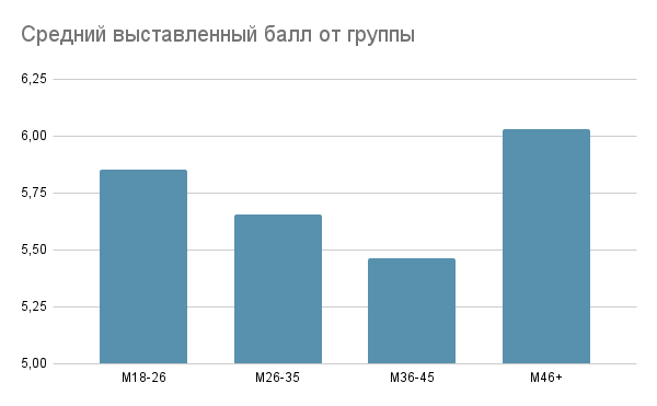 Данный должны получиться интересные. Так мы все же выясним кто более привередливый и насколько привередливый, ну а также получим традиционные средние баллы оценки привлекательности: средние среди сказавших "да", средние среди сказавших "нет" и средние общие. Еще есть идея сократить количество возрастных групп, так как голосующих 18-16 у нас человек 5-6 от силы. Думаю, что лучше сделать группы до 30, 30-40 и 40+. Но не уверен. Как думаете?