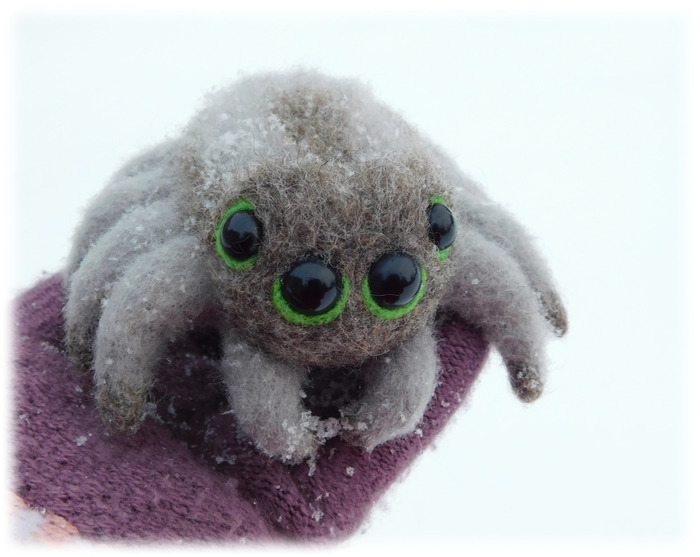 Бывает такое, начинаешь работать и откладываешь на некоторое время из-за не решённых вопросов, недостающих материалов.. Паучок был одним и тех, кому пришлось полежать на полке, пока придумывала как сделать пушистые ноги и что б меня устраивали)