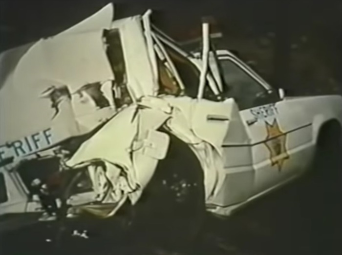В 8:00 заместитель шерифа округа Сан- Бернардино Флойд Тидвелл собрал капитанов Филиппа Шайлера и Чарльза Фоллетта и отправился с ними к командованию SWAT, находившемуся в этот момент в каньоне Колдуотер. Все трое запрыгнули в джип и отправились в пятимильное путешествие по грунтовой части Литл-Крик-Роуд. По пути они подобрали помощника шерифа Майкла Смита из SWAT округа, чья машина заглохла при попытке преодолеть брод на ручье Норт-Форк. Когда они проехали три с половиной мили из пяти, помощник Смит заметил что - то на противоположной стороне ущелья.