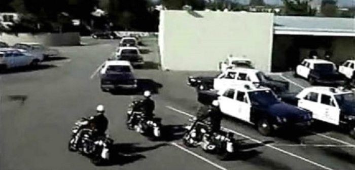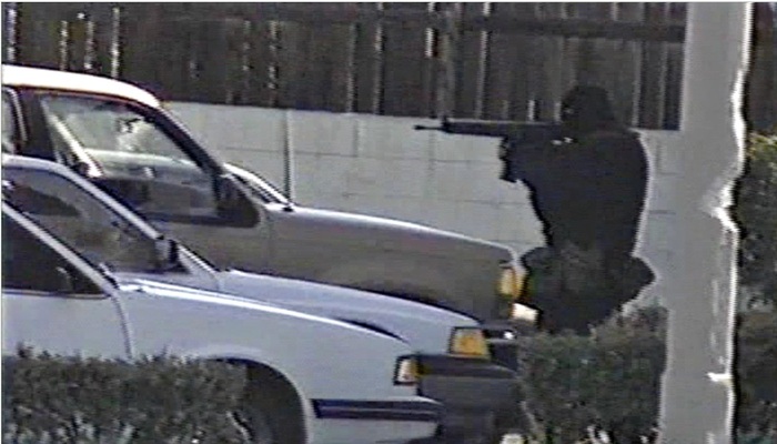 Дальнейшее хорошо видно на кадрах, снятых с вертолета новостного агентства LA News, кружащего над местом перестрелки.