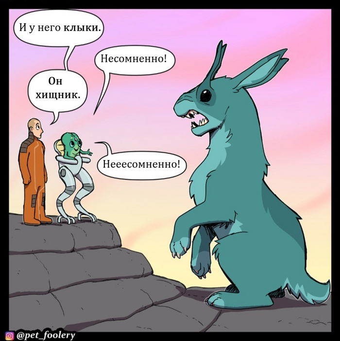 2828 kotofeichkotofej Комиксы Серия Pet Foolery Кролик 10 месяцев назад Ремастер старого комикса: "Они почти одинаковые." Автор: Ben Hed (Pet Foolery) Показать полностью 6 [моё] Комиксы Pet Foolery Юмор Инопланетяне Земляне Кролик Телепортация Хищные животные Перевел сам Ремастер Длиннопост 62 5 2 2 Ещё 0