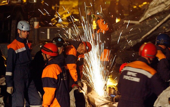 Проходя через досмотровые рамки, представитель службы безопасности попросил сдать колюще-режущие предметы. Зачем? Мы ведь летим нашими МЧСовскими, бортами. Ну, попросил, получи. И спасатели с ехидными улыбками начали «разооружаться». Служащие, и сами, наверное, были не рады этому. У нас у каждого есть ножи. У кого-то два (для разных нужд). Кто-то выложил вилку из кармана, кто-то штопор.