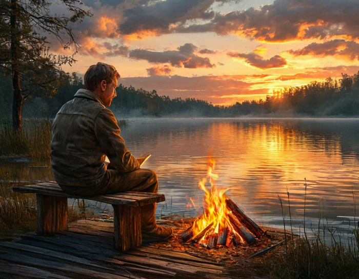 На берегу небольшого озерца я остановился, собрал немного веток, развел костер. Книжечка горела легко - страницы, исписанные витиеватым почерком, таяли в пламени.