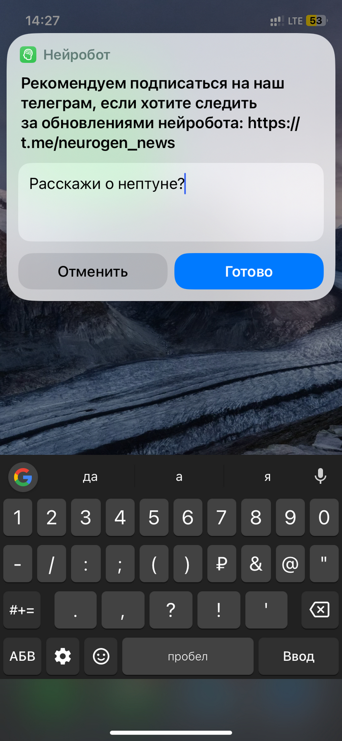 - Top-P – отвечает за разнообразие текста, чем выше значение, тем более свободной будет речь.