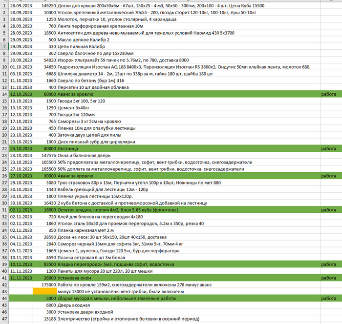 Вторая часть: возведение коробки дома, с ценами на работы и материалы:
