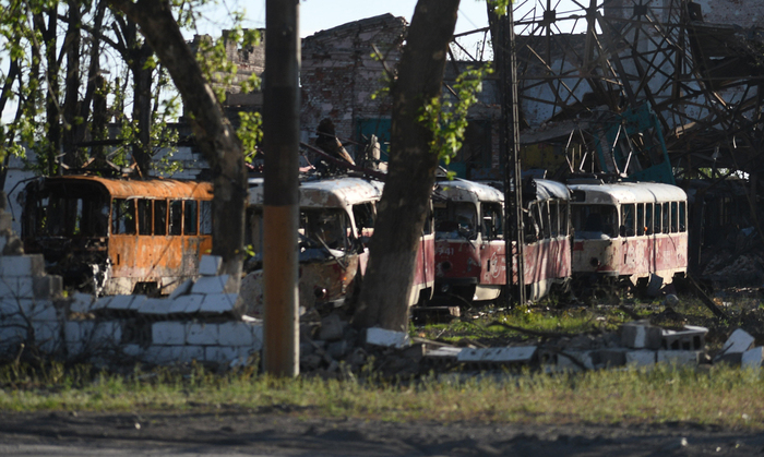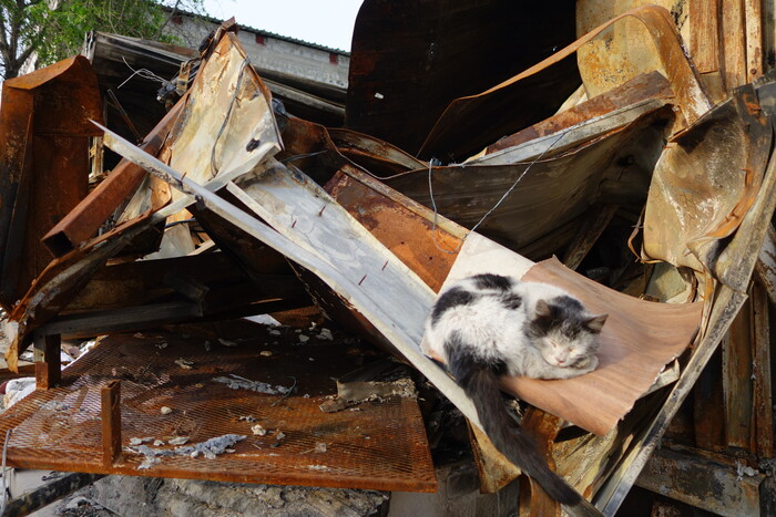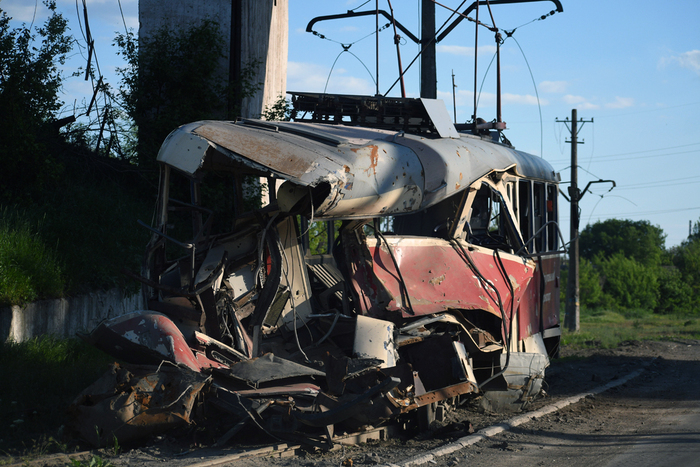 7:01. Трамвайка. Трамвайный парк значительно повреждён. Многие трамваи фактически уничтожены, как и пути, и провода. Вообще, трамвайное движение обещают восстановить, и это тоже будет символическое событие. Но трудно даже представить, чего это будет стоить.