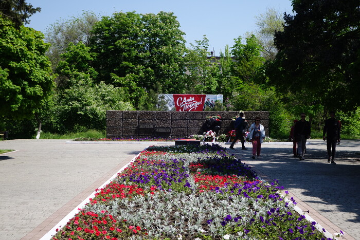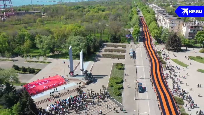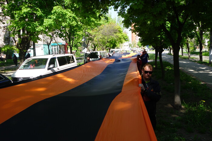 Цель назавтра простая: пройти пешком 500 метров от памятника жертвам фашизма до монумента освободителям Донбасса (проспект Нахимова) с большой георгиевской ленточкой и со знамёнами Победы. Техники никакой не будет, только мы. Волонтёров из России в городе меньше сотни, поэтому планируем, что к нам присоединятся местные жители.