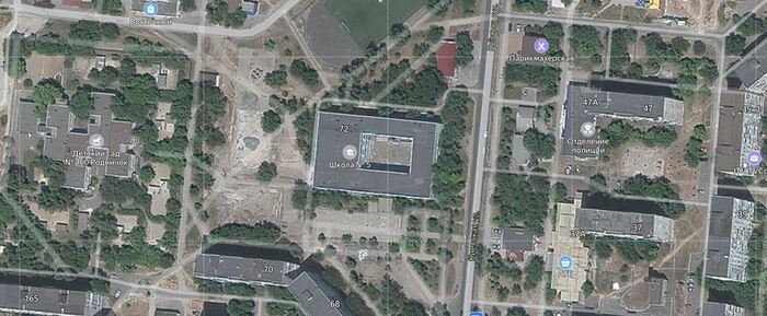 Наша школа - приоритетная цель. Собственно, она была бельмом на глазу ещё до начала СВО. Школа была единственной т.н. "специализированной", с ведением почти всех предметов на русском языке, и имела явно "сепаратистскую" репутацию (пророссийскую). А потом ещё и волонтёры со своей гуманитаркой... В общем, за время нашего волонтёрства школу дважды атаковали (безуспешно), и разрушена она была одной из первых.