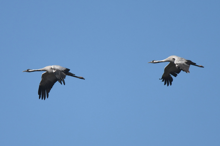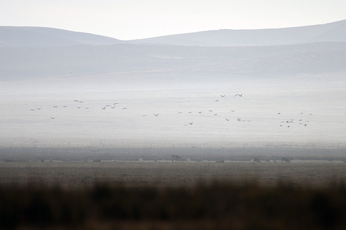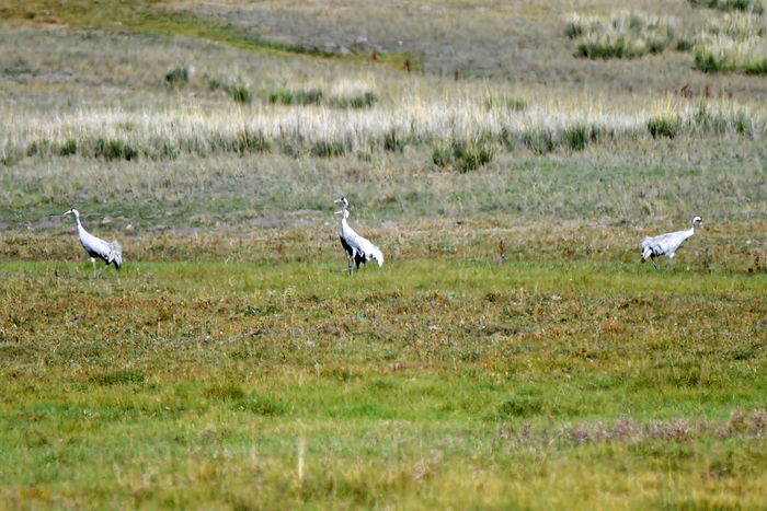 Я не нашёл точной информации о численности серого журавля на Тузколе. Видел оценки в 60-70 птиц (всего!), при этом своими глазами наблюдал три пары вблизи и большую стаю из 50 птиц вдали. Возможно, вот эти 56 журавлей - это и вся современная популяция этого подвида...