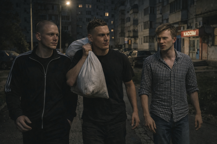 Мы как раз подошли к нужному дому. Жека скомандовал повернуть к подъезду. Антон сбросил мешок, и Жека, многозначительно посмотрев на меня, а потом на Антона, взял мешок и зашёл с ним в подъезд.