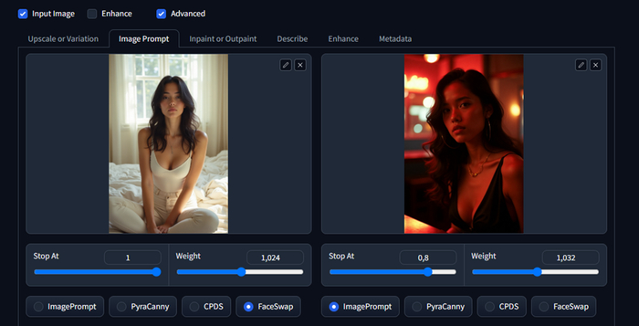 Нужно использовать фото лица, для FaceSwap и искомый результат для ImagePromt
