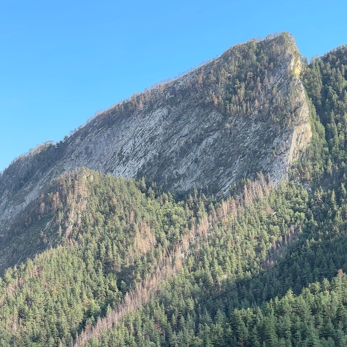Могучие скалы нависали над нашими головами и в одной из них четко прослеживались очертания задравшегося края тектонической плиты. Как я заметил чуть позже, в этой местности много таких гор, которые кажутся вылезшими из земли совсем недавно – у них отчетливо виден торец плиты и плоская часть, бывшая некогда равниной.
