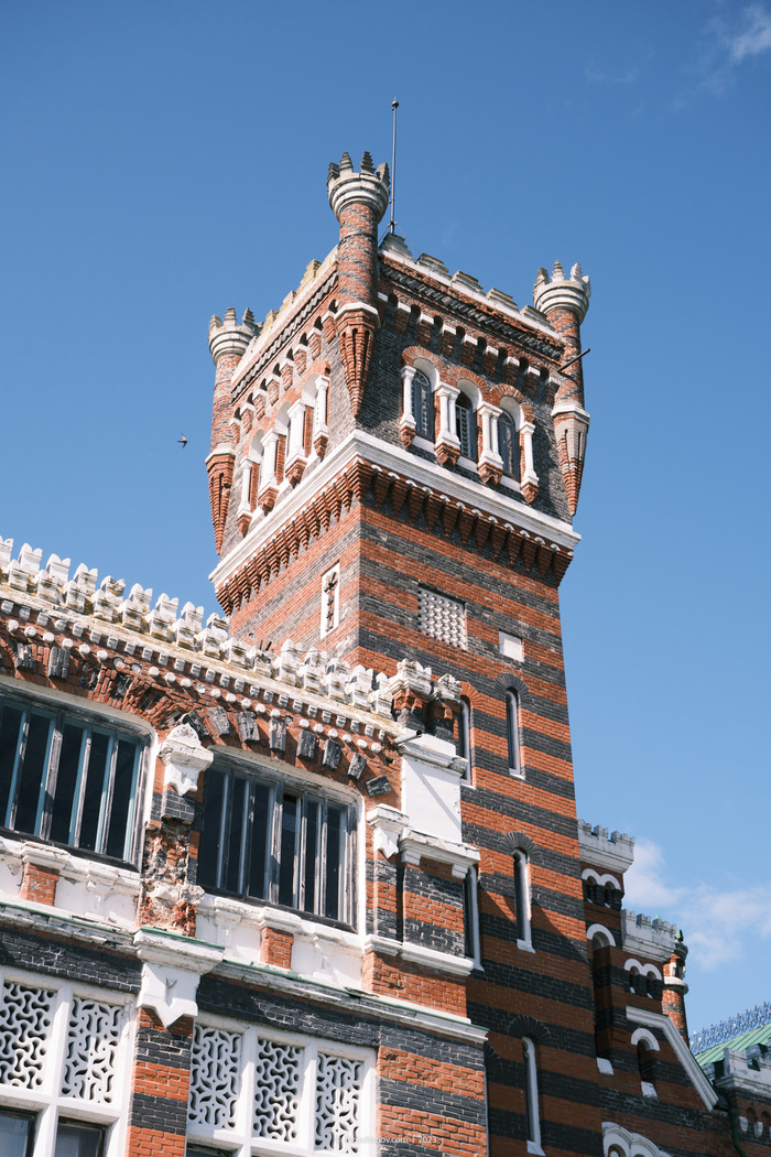 Башни с лестницами. Украшено богато конечно. Особое внимание к оголовкам труби шахтам вентиляции, не хуже чем у Гауди.