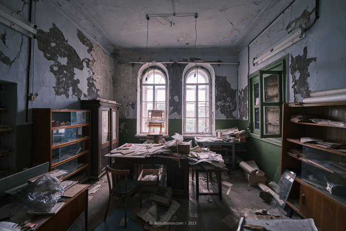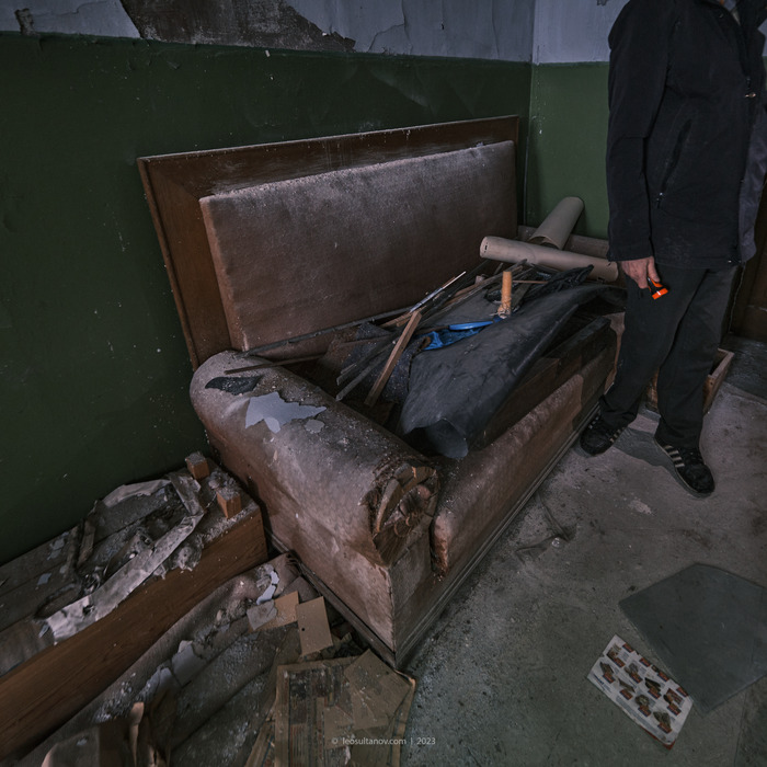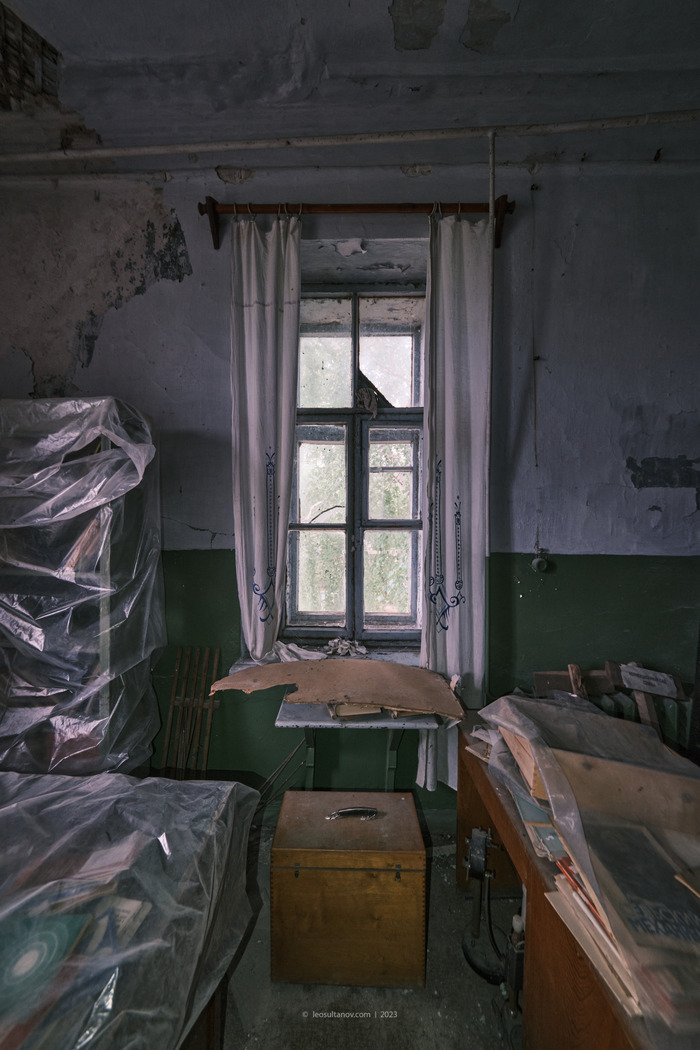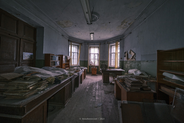 Отдельного, моего личного внимания, как фотографа любителя, заинтересовала фото- лаборатория с очень красивым столом с оборудованием и прочими ништяками советского периода. Там же в столах лежали стеклянные негативы (серебряно-желатиновая пластина), много химии для проявки, фотоплёнки и фотобумаги. Я ничего не тырил, только заглянул в ящики, если что!